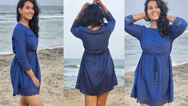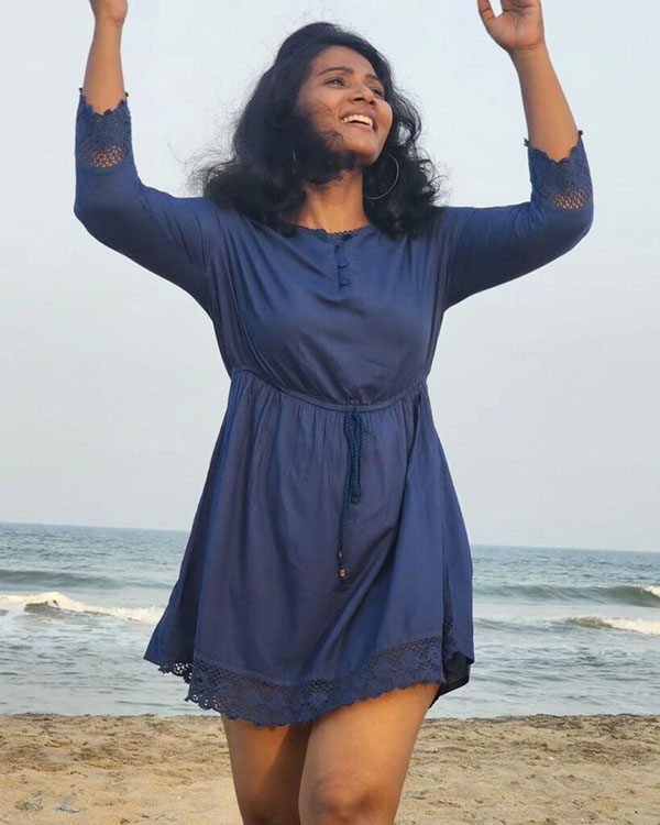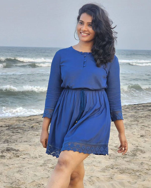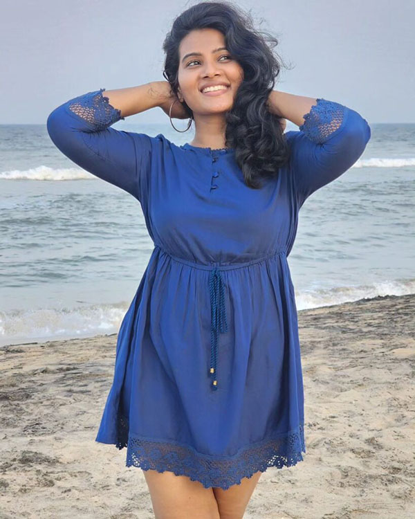 கடற்கரையில் குட்டை கவுனில் கவர்ச்சி போஸ் கொடுத்த திவ்யா துரைசாமி!!