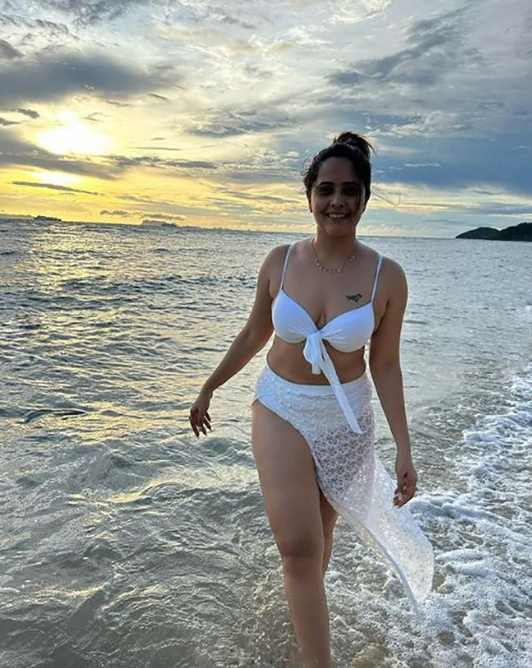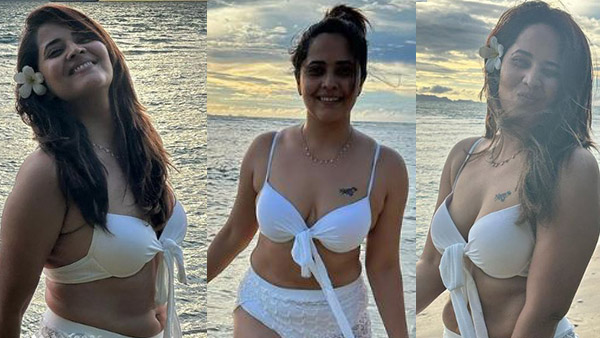 கடற்கரையில் படு மோசமான உடையில் சகலத்தையும் காட்டி கவர்ச்சி போஸ் கொடுத்த அனுசுயா!!