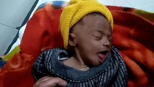 சம்பவத்தன்று வெப்பநிலை 3 டிகிரி செல்சியஸ் என பதிவாகியுள்ளது. அப்போது பச்சிளம் குழந்தையின் முனகும் சத்தம் அப்பகுதி மக்களுக்கு கேட்டுள்ளது. உடனடியாக சத்தம் வந்த திசையில் விரைந்த அப்பகுதி மக்கள் புதைக்கப்பட்டிருந்த குழந்தையை தோண்டி எடுத்து அடுத்துள்ள அரசு மருத்துவமனைக்கு விரைந்துள்ளனர்.