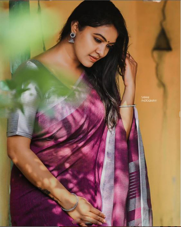 சில நாட்களுக்கு முன்பு கணவர் தனக்கு ஆபாச மெசேஜ் அனுப்பவதாக சொல்லி காவல் நிலையத்தில் புகாரளித்து பரபரப்பை ஏற்படுத்தினார். ஒருபக்கம், கட்டழகை அழகான உடைகளில் காட்டி புகைப்படங்களையும் தொடர்ந்து வெளியிட்டு ரசிகர்களை குஷிப்படுத்தி வருகிறார். அந்த வகையில், புடவையில் அழகை காட்டி புகைப்படங்களை வெளியிட்டு ரசிகர்களை தன்வசப்படுத்தியுள்ளார்.