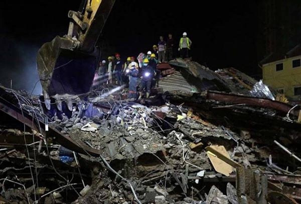 இந்த கோர விபத்தில் வேலையில் ஈடுபட்டிருந்த சுமார் 50 தொழிலாளர்கள் சிக்கினர். பின்னர் இதுகுறித்து தகவல் அறிந்து சம்பவ இடத்திற்கு விரைந்த தீயணைப்பு படையினர், இடிபாடுகளுக்குள் சிக்கியவர்களை மீட்டனர்.