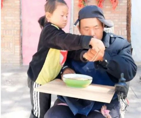 சீனாவின் Ningxia மாகணத்தை சேர்ந்த சிறுமி தான் Jia Jia. 6 வயதான இவர் தினந்தோறும் காலையில் 6 மணிக்கு எல்லாம் எழுந்து தன்னுடைய தந்தையான Tian Haicheng-க்கு சுமார் அரைமணி நேரம் மசாஜ் செய்கிறார்.அதன் பின் அப்பாவுக்கு பல் துலக்கிவிடுவது, குளிப்பாட்டி விடுவது போன்ற வேலைகளை பள்ளிக்கு செல்வதற்கு முன்பு செய்து முடித்துவிடுகிறார்.
