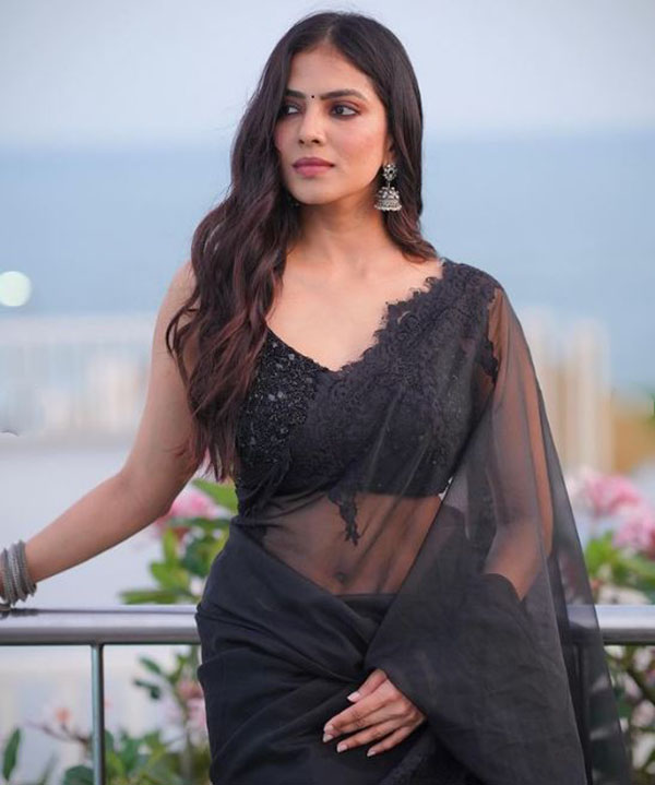 கண்ணாடி போன்ற சேலையில் அந்த அழகை அப்பட்டமாக காட்டி மோசமான போஸ் கொடுத்த மாளவிகா!!