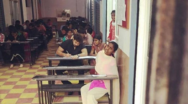 கண்பார்வையற்ற மாணவிக்கு தேர்வெழுதிய பிரபல நடிகர் : வைரலாகும் புகைப்படத்தால் குவியும் பாராட்டு!!