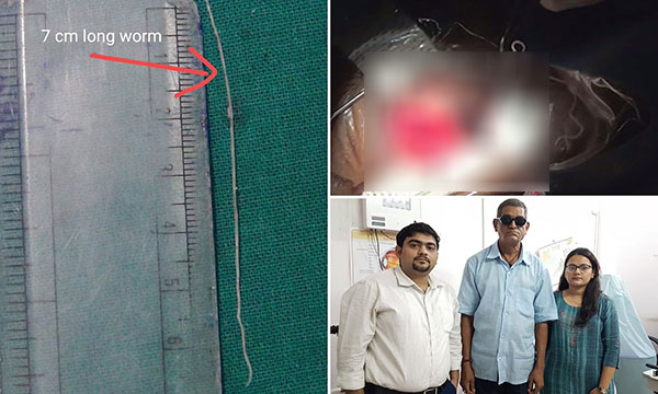 இந்தியாவின் மராட்டிய மாநிலத்தை சேர்ந்த விவசாயி ஒருவர் கண்ணில் இருந்து 3 அங்குல நீளம் கொண்ட ஒட்டுண்ணி புழுவை அப்புறப்படுத்திய சம்பவம் வெளிச்சத்துக்கு வந்துள்ளது.