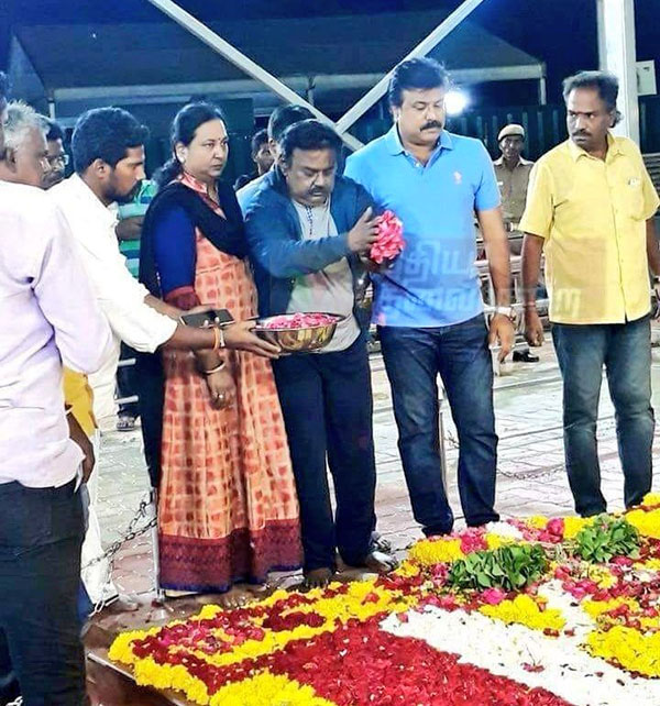 அங்கு கண்ணீர் மல்க அஞ்சலி செலுத்தியதோடு, மலர் தூவி மரியாதை செலுத்தினார்.