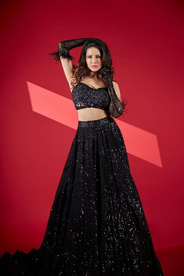 கருப்பு உடையில் கவர்ச்சி விருந்து வைத்த சன்னி லியோன் ஹாட் போட்டோஸ்!!