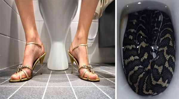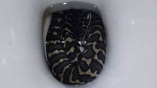 கழிவறையில் பதுங்கியிருந்த மலைப்பாம்பு : உள்ளே சென்ற பெண்ணுக்கு நடந்த அதிர்ச்சி!!