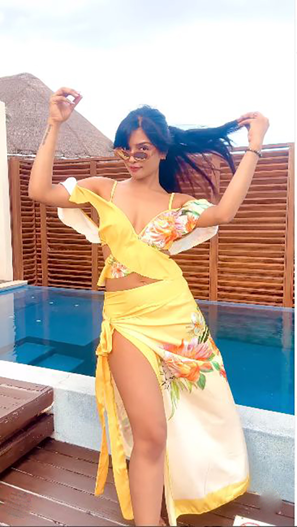 இவர் நடித்த 5 படங்களுமே சரியாக போகவில்லை. இதனால் கவர்ச்சி ரூட்டில் இறங்கினார். அதற்கு நல்ல பலன் கிடைத்தது. தொடர்ந்து கவர்ச்சி ரூட்டில் பயணிக்க தொடங்கிய இவர் அடிக்கடி தன்னுடைய இன்ஸ்டாகிராம் பக்கத்தில் ரசிகர்களை சூடேற்றும் வகையில் கவர்ச்சி புகைப்படங்களை, வீடியோக்களை அப்லோட் செய்து வருகிறார்.
