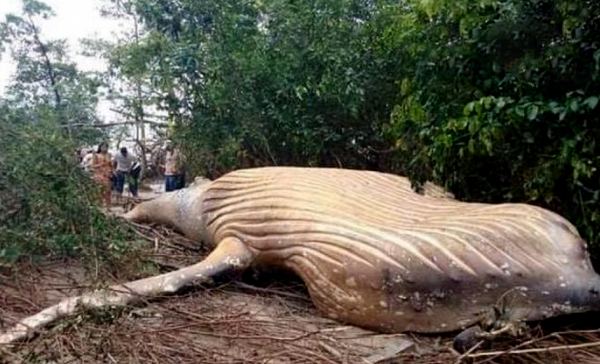 சுமார் ஒரு வயதுடைய 36 அடி நீளமான இளம் திமிங்கிலம் ஒன்று இறந்த நிலையில் அமேசன் காட்டுப்பகுதியில் கண்டுபிடிக்கப்பட்டுள்ளது.