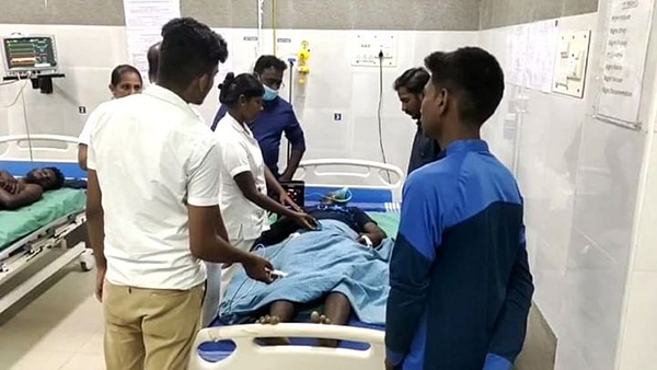 இதைப்பார்த்த அவரது நண்பர்கள் முனிஸ்வரனை மீட்டு மருத்துவமனையில் சிகிச்சைக்காக சேர்த்துள்ளனர். அங்கு அவருக்கு தீவிர சிகிச்சை அளிக்கப்பட்டுள்ளது.