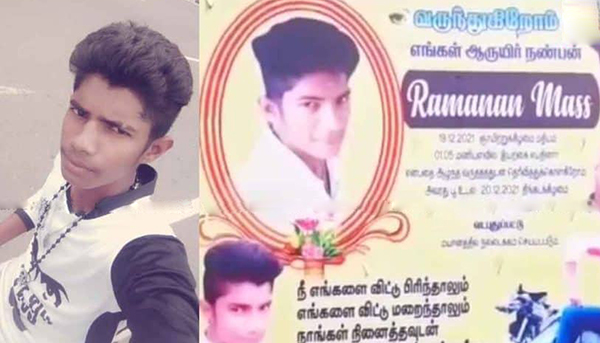 இதனால் மனமுடைந்த ரமணன் உடனடியாக அவரது வீட்டுக்குச் சென்று புடவையால் மின் விசிறியில் தூக்கிட்டு தற்கொலை செய்து கொண்டுள்ளார்.