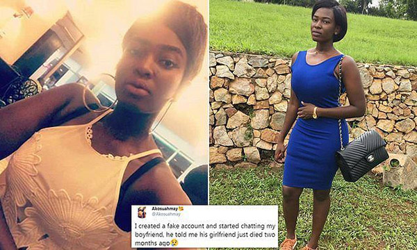மேற்கு ஆப்பிரிக்காவைச் சேர்ந்த இளம் பெண் ஒருவர் தன் காதலனின் உண்மை முகத்தை அறிய சமூகவலைத்தளத்தில் போலி அக்கவுண்ட் புதிதாக உருவாக்கிய நிலையில், அவர் அதைப் பற்றி வெளியிட்டுள்ள தகவல் தற்போது வைரலாகி வருகிறது.