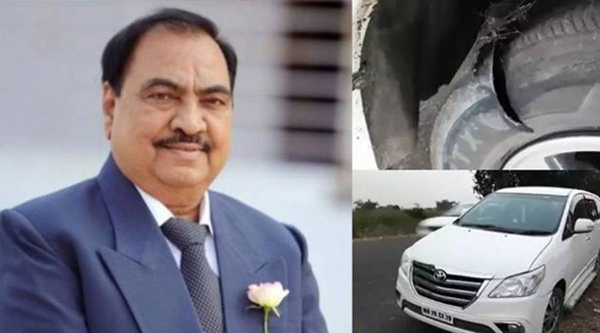 ஏக்நாத் கட்சே உட்பட காரில் இருந்தவர்கள் உ யி ர் பி ழை த் தனர்.