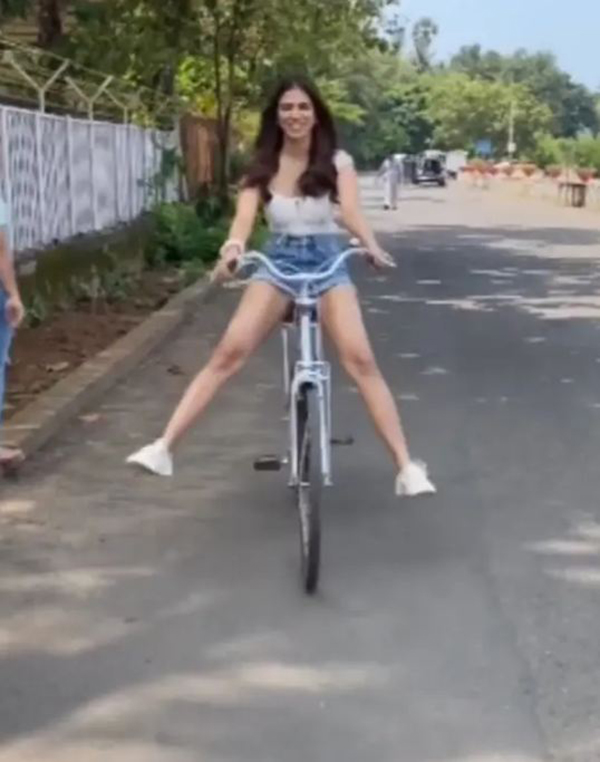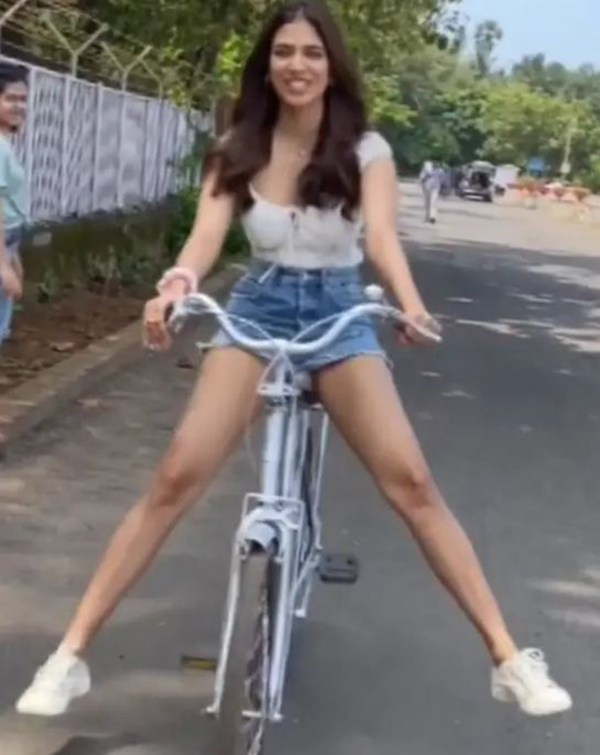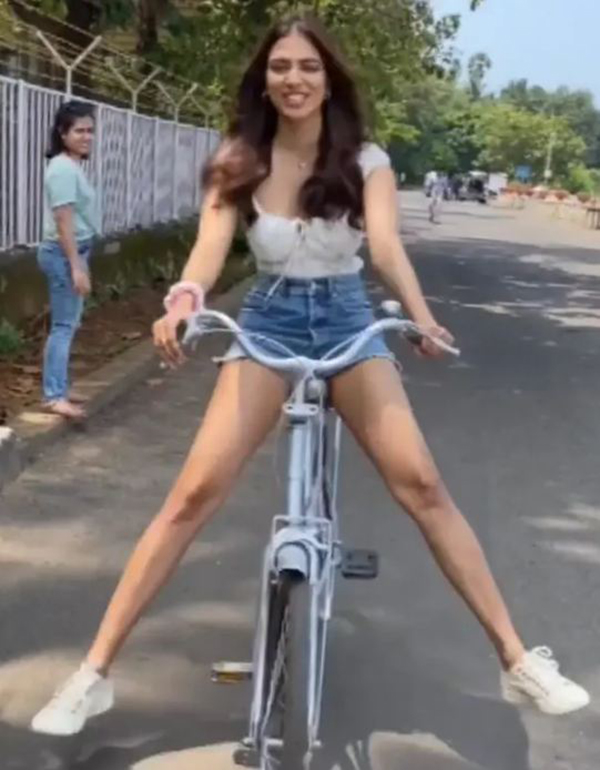 இதன் மூலம், தன்னுடைய பட வாய்ப்புகளை உறுதிப்படுத்த முடியும் என்று நம்புகிறார் அம்மணி. அந்த வகையில், தற்போது குட்டியான டிரவுசர் அணிந்து கொண்டு சைக்கிள் ஓட்டுவது வீடியோ ஒன்று இணையத்தில் வெளியாகி வைரலாகி வருகிறது. இதனை பார்த்த ரசிகர்கள் என்ன கன்றாவி இது..? அணிந்திருப்பதே குட்டியான ட்ரவுசர்.. இதில் காலை விரித்துக் கொண்டு வருகிறீர்கள்.. என்று விளாசி வருகின்றனர்.