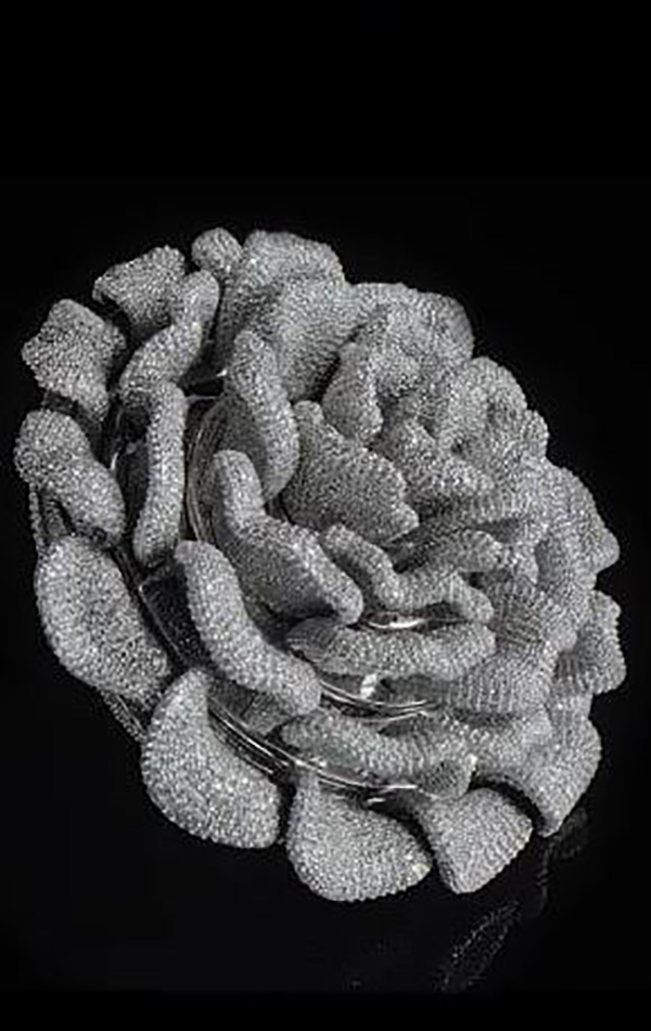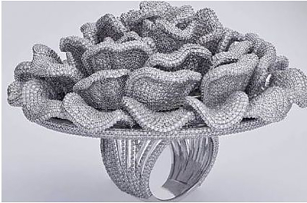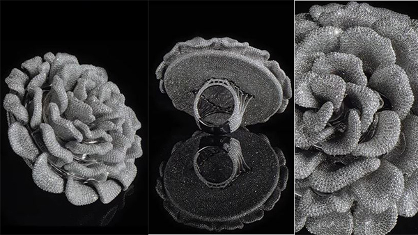 தொடர்ந்து மோதிரத்தின் இதழ்களின் ஒவ்வொரு பக்கத்திலும் கைகளைக் கொண்டே, வைரங்களை தனித்தனியாக வைத்துள்ளதாக வைரக்கடை நிறுவனம் சார்பில் தெரிவிக்கப்பட்டுள்ளது.
