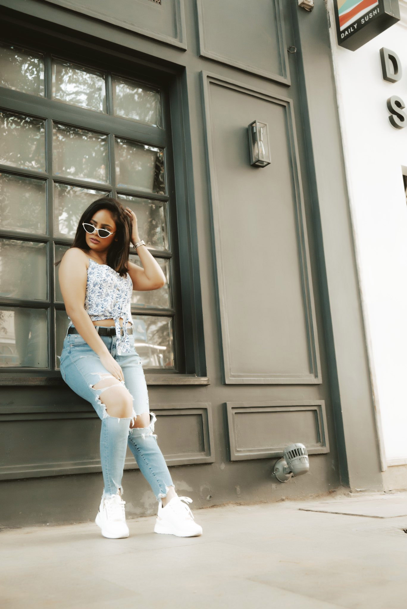 இணையதளத்தில் ஆக்டிவாக இருந்து இவரது கவர்ச்சி புகைப்படங்களை பகிர்ந்து வரும் நந்திதா புகைப்படங்கள் மற்றும் ரீல்ஸ் வீடியோக்களை பகிர்ந்து வருகிறார். தற்போது, கிழிந்த பேண்ட் போட்டு கிளாமர் ஆடையில், ரசிகர்களை மயக்கும் போஸ் கொடுத்த புகைப்படங்களை பகிர்ந்து உள்ளார்.