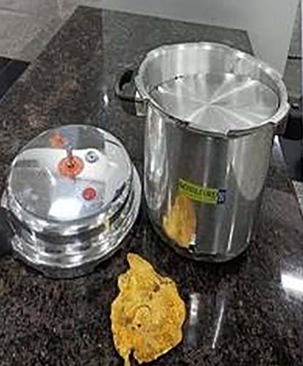 பின்பு அதிகாரிகள் பிரஷர் கு க் க ரை திற ந்து பார்க்கையில் அதன் அ டி ப் பகுதி மட்டும் வ ழ க் க த்திற்கு மா றா க இருந்துள்ளது. மேலும் அதைக் கவனிக்கையில் அதன் கீ ழ் பு றம் பெரிய இடைவெளி இருந்தது தெரிய வந்ததுள்ளது.