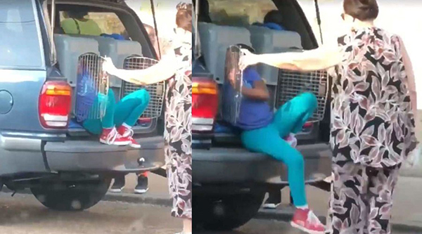 ஏழு மற்றும் எட்டு வயதுள்ள அந்த இரண்டு குழந்தைகளையும் பொலிசார் விசாரித்து வருகின்றனர்.தங்கள் பாட்டி வேனில் போதுமான இடம் இல்லை என்று கூறி தங்களை நாய் கூண்டில் அடைத்து கொண்டு வந்ததாக குழந்தைகள் கூறினர்.