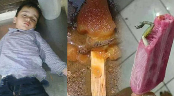 அசுத்தமான தண்ணீரில் தயாரித்த ஐஸ் க்ரீமை சாப்பிட்ட குழந்தை ஒன்று பரிதாபமாக உயிரிழந்துள்ளது. குறித்த புகைப்படம் சமூகவலைத்தளங்களில் தீயாய் பரவி வருகின்றது. அனைவருக்கும் விழிப்புணர்வூட்டும் வகையில் இந்த புகைப்படங்களை பதிவிட்டுள்ளனர்.