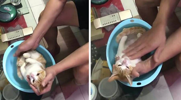 கை குழந்தையை குளிக்க வைப்பது எப்படி என பூனையை வைத்து சோதனை செய்த நபரின் வீடியோ தற்போது சமூக வலைதளங்களில் வைரலாக பரவி வருகிறது.