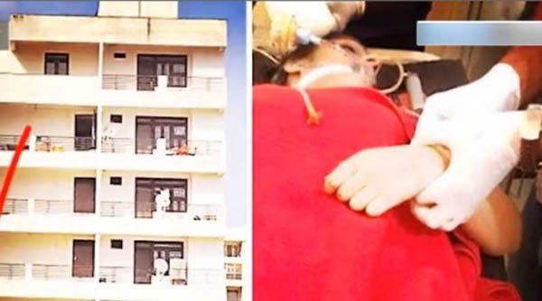 ஜெய்ப்பூர் மாநிலம் மோகனா பகுதி அருகே உள்ள அடுக்குமாடி குடியிருப்பு ஒன்றில் திடீரென பெண் ஒருவர் அலறும் சத்தம் கேட்டுள்ளது. இதனை கேட்டு அதிர்ச்சியடைந்த பக்கத்து வீட்டார் வேகமாக வெளியில் வந்து பார்த்த பொழுது பெண் ஒருவர் 3-வது மூன்றாவது மாடியிலிருந்து நிர்வாணமாக குதித்துள்ளார்.
