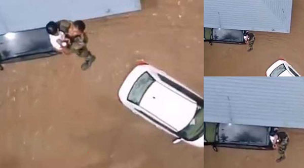 குழந்தையை கயிற்றில் இறங்கி அந்த வீரர் காப்பாற்றி இருக்கிறார். குழந்தையை வாங்கியவுடன் குழந்தையின் தாய் சந்தோசத்தில், அந்த வீரருக்கு நன்றி சொல்லியுள்ளார். இந்த வீடியோ வைரலாகி உள்ளது.