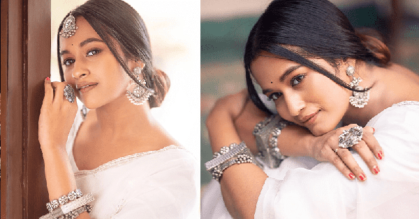 கை இல்லாத ஜாக்கெட்டில் போஸ் கொடுத்து இளசுகளை திணறடித்த காவியா அறிவுமணி!!