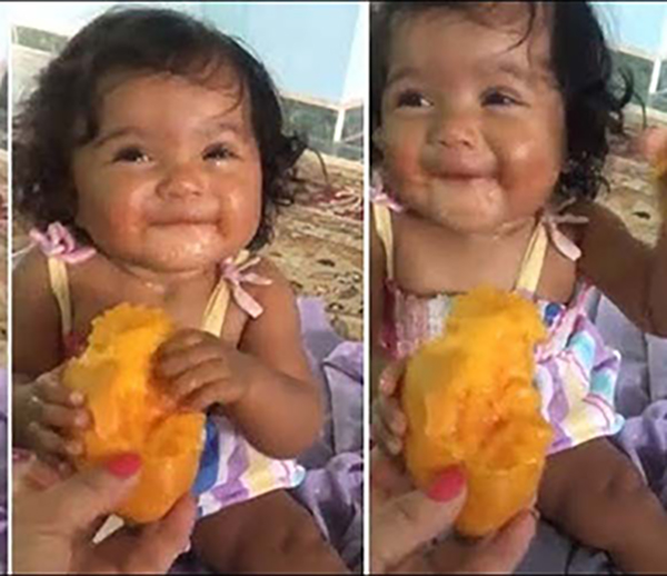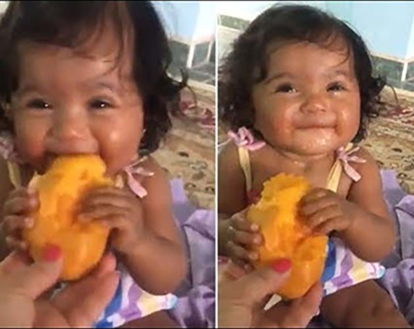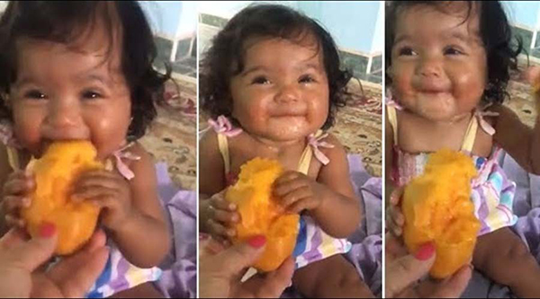 முதன்முறையாக மாம்பழத்தை சுவைக்கும் கு ழந் தை யின் கண்கொள்ளாக் காட்சி தற்போது தீ யா ய் ப ரவி வருகின்றது.