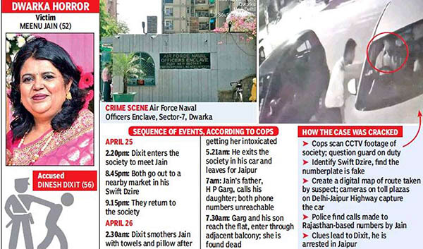 புதுடெல்லியை சேர்ந்தவர் மீனு ஜெயின். இவர் இண்டிகோ விமானத்தை இயக்கும் விமானியின் மனைவியாவார். மீனுவுக்கு ஜெய்ப்பூரை சேர்ந்த தினேஷ் தீட்ஷிட் என்பவருடன் சமூகவலைதள செயலி மூலம் நட்பு ஏற்பட்டது.