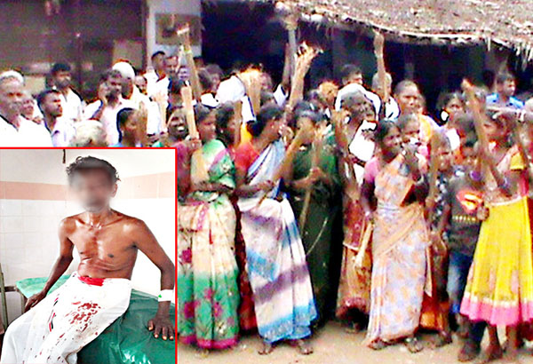 இதை பார்த்த ஊர்மக்கள் இருவரையும் வெளியே இழுத்து செருப்பால் அடித்து சராமாரியாக தாக்கி உள்ளனர். பூசாரி உடன் இருந்த பெண்ணின் ஆடைகளை கிழித்தும் அவரை கீழே தள்ளியும் தாக்கி உள்ளனர். இந்த வீடியோ காட்சிகள் இணைய்தில் வெளியாகி பெரும் பரபரப்பை ஏற்படுத்தியது.