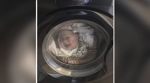 சலவை இயந்திரத்திற்குள் குழந்தையின் முகம் : அ திர்ச்சியில் இணையதளவாசிகள்!!