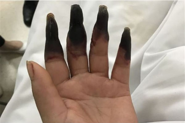 இதனால் இரண்டு தினங்களுக்கு பின் அந்த காயம் பட்ட பகுதியில் நோய் தொற்று ஏற்பட்டுள்ளது. அது அப்படியே கைகளில் இருக்கும் அடுத்தடுத்து விரல்களுக்கு பரவி கை ஒரு கருப்பு நிறத்தில் அழுகி நிலையில் மாறியுள்ளது. இதனால் அதிர்ச்சியடைந்த அந்த பெண் உடனடியாக மருத்துவரிடம் சிகிச்சை மேற்கொண்ட போது, gangrene என்ற நோய் தொற்று என்று கூறியுள்ளனர்.