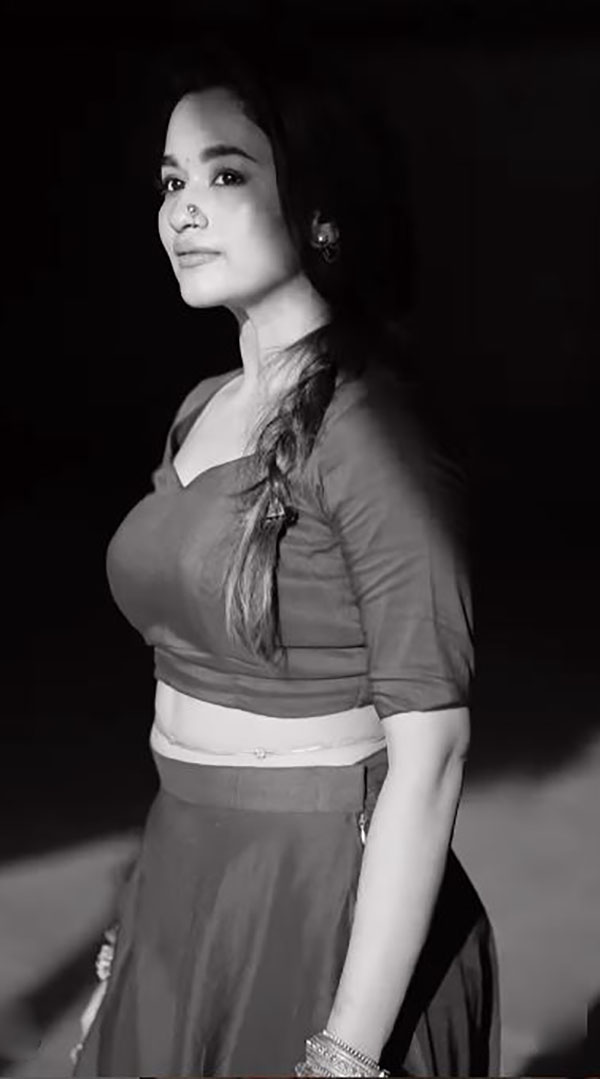 அதில் ஆக்டிவாகவும் இருக்கிறார் காவ்யா. இந்த நிலையில், முன்னழகை எடுப்பாக காட்டியுள்ளார். இதனை பார்க்கும் இளசுகளை மிரளச் செய்துள்ளார்.