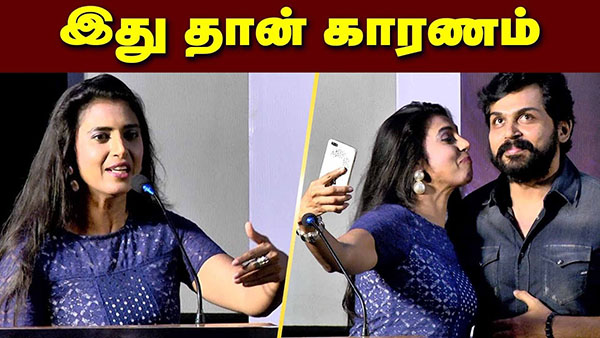 செல்பி எடுக்க வந்த நடிகை கஸ்தூரி : மேடையிலேயே கோபமாக திட்டிய கார்த்தி!!
