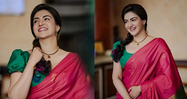சைனிங் கன்னம் என்னமோ பண்ணுது… புடவையில் அழகுகள் எடுப்பாக தெரிய கவர்ச்சி போஸ் கொடுத்து ரசிகர்களை சூடேற்றிய ஹனிரோஸ்!!