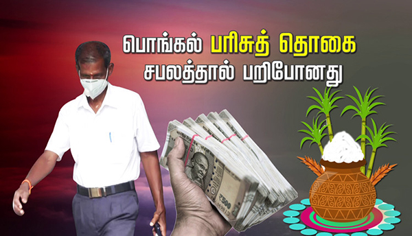 குடும்ப அட்டைகளுக்குப் பொங்கல் பரிசுத் தொகை வழங்க முதல் நாளே 8 லட்ச ரூபாயை வங்கியில் இருந்து எடுத்துக் கைப்பையில் கொண்டு சென்றுள்ளார். இந்நிலையில் தனது பையில் இருந்த பணத்தில் 5 லட்சத்து 15 ஆயிரம் ரூபாயைப் பணத்தை வ.ழி.ப்.ப.றிக் கு.ம்.ப.ல் ப.றி.த்.துச் செ ன் றுவி ட்டதாக வ டக் கு க் க ட ற்க ரை கா.வ.ல் நி.லை.யத்தில் பு.கா.ர் கொ டு த் து ள் ளார். அதில் கோயம்பேடு பே ரு ந் து நி லை ய ம் அருகே தான் வந்தபோது த ன் னை ஆட்டோவில் இருந்த பெ ண் க.ட.த்.திச் செ ன் று ப ண த் தைப் ப றி த் துக்கொண்டு பா ரி முனையில் இ றக் கி வி ட் ட தாகத் தெரிவித்துள்ளார்.