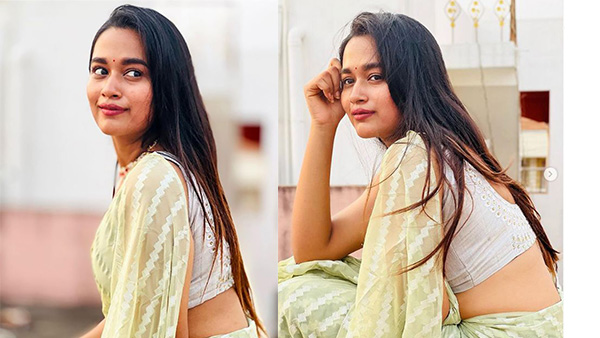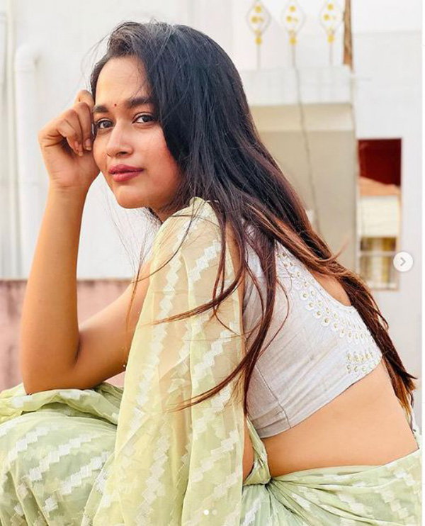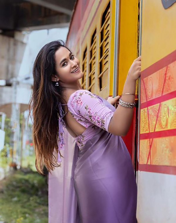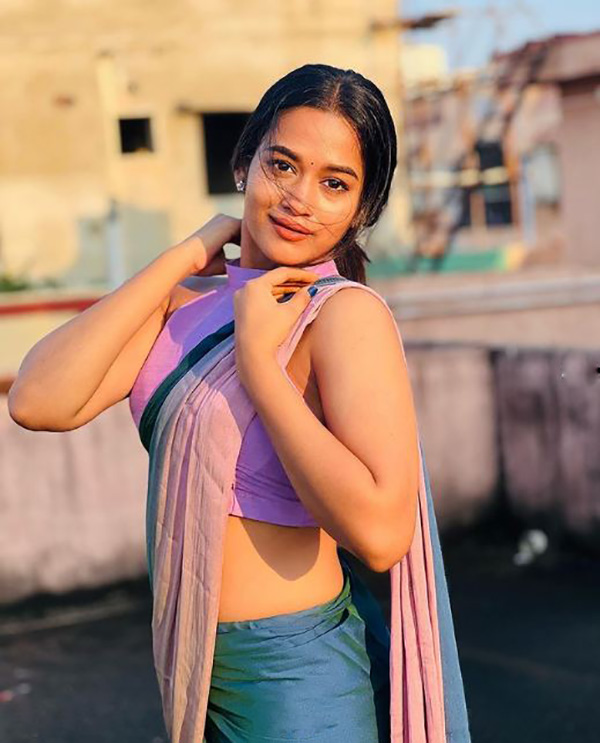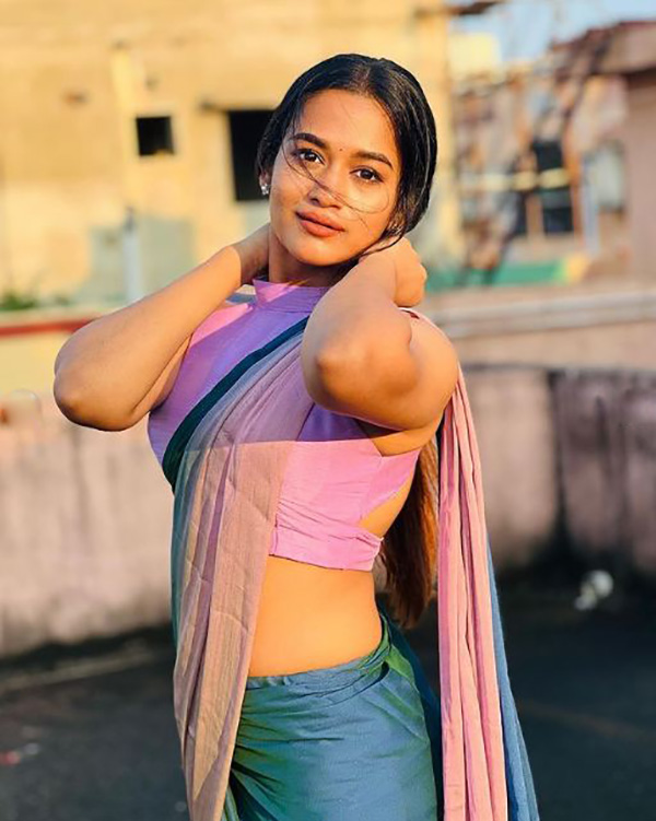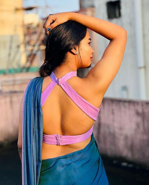 ஜன்னல் வைத்த ஜாக்கெட்டில் பின்னழகை எடுப்பாக காட்டி இளசுகளை மிரளச் செய்த காவியா!!