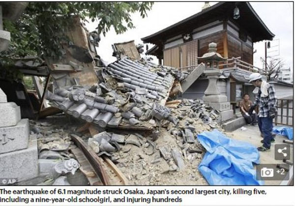 ஜப்பானில் கடந்த திங்கட்கிழமை ஏற்பட்ட பயங்கர நிலநடுக்கத்தால் 5 பேர் பலியாகியுள்ளதுடன் 100-க்கும் மேற்பட்டோர் பயங்கர காயங்களுடன் மருத்துவமனையில் அனுமதிக்கப்பட்டு சிகிச்சை பெற்று வருகின்றனர்.