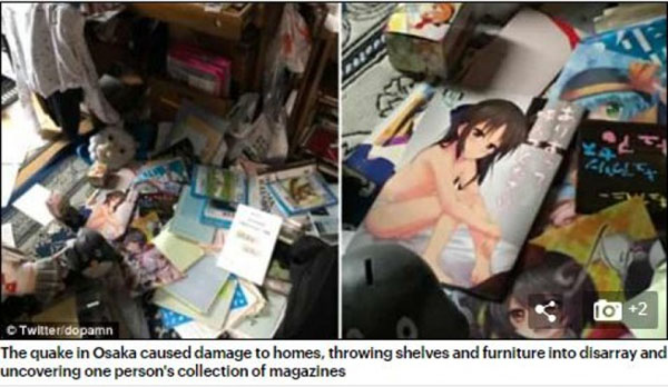 ஜப்பானில் நிலநடுக்கத்தின் போது மகன் மறைத்து வைத்திருந்த ஆபாச கார்ட்டூன் இதழ்கள் மற்றும் புகைப்படங்களை பார்த்து தாய் அதிர்ச்சியடைந்துள்ளார்.