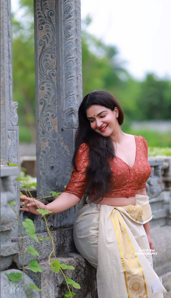 இந்நிலையில், தன்னுடைய இன்ஸ்டாகிராம் பக்கத்தில் Traneparent sleeveless Saree அணிந்து செம்ம ஹாட்டான சில புகைப்படங்களை வெளியிட்டு ரசிகர்களை புலம்ப வைத்துள்ளார் அம்மணி.