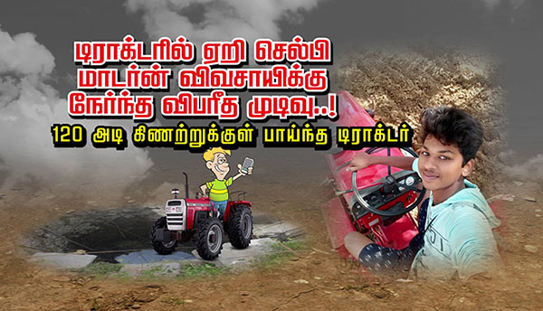 விடுமுறைக்கு ஊருக்கு சென்ற இடத்தில் விவசாயி போல டிராக்டரில் அமர்ந்து செல்பி எடுத்த விபரீத இளைஞர் ஒருவர், டிராக்டரை இயக்க முயன்றதால், டிராக்டருடன் 120 அடி ஆழ கிணற்றுக்குள் விழுந்து ப.லி.யான ச.ம்பவம் அ.திர்ச்சியை ஏற்படுத்தி உள்ளது