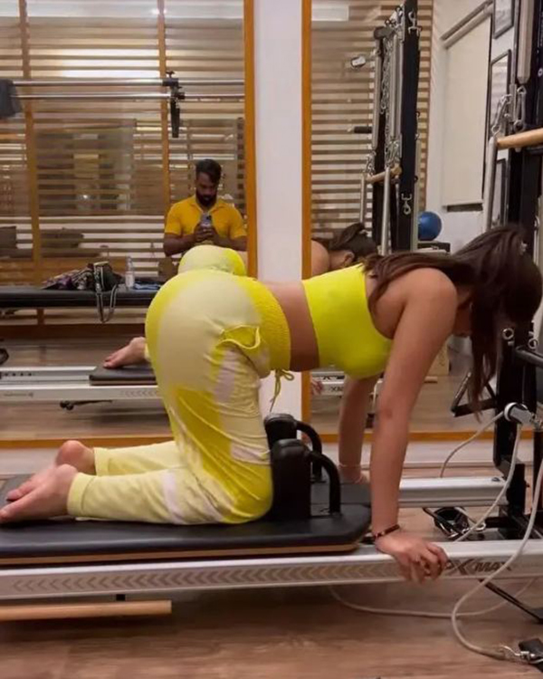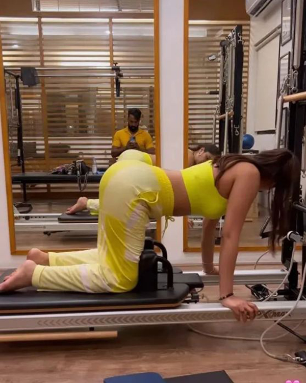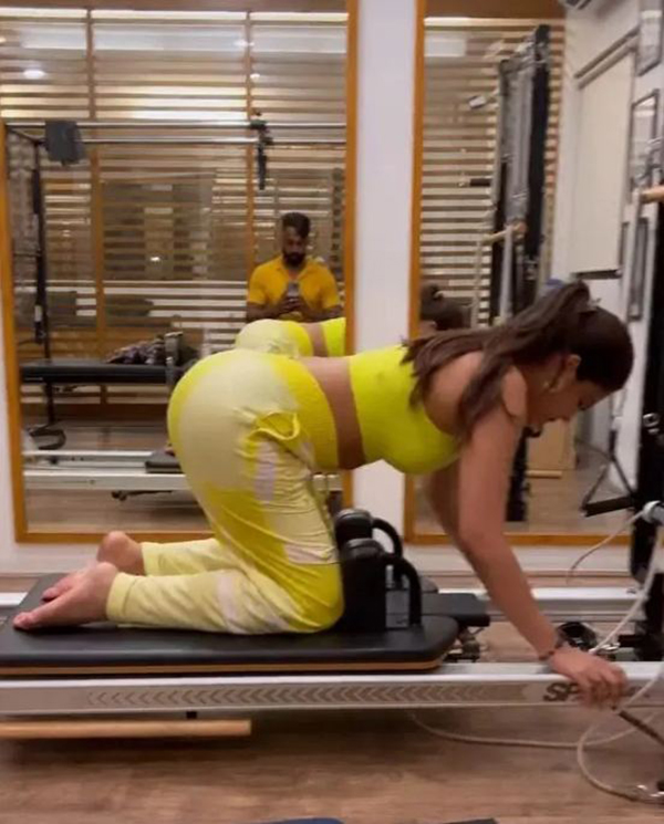 தன்னுடைய உடலை கட்டுக்கோப்பாக வைத்துக் கொள்வதிலும் ஆர்வம் செலுத்தி வருகிறார். அந்த வகையில் தற்போது டைட்டான லெக்கின்ஸ் அணிந்துகொண்டு முட்டிபோட்டு குனிந்தபடி உடற்பயிற்சி செய்யும் இவரது புகைப்படங்கள் சில இணையத்தில் வெளியாகி வைரலாகி வருகிறது.