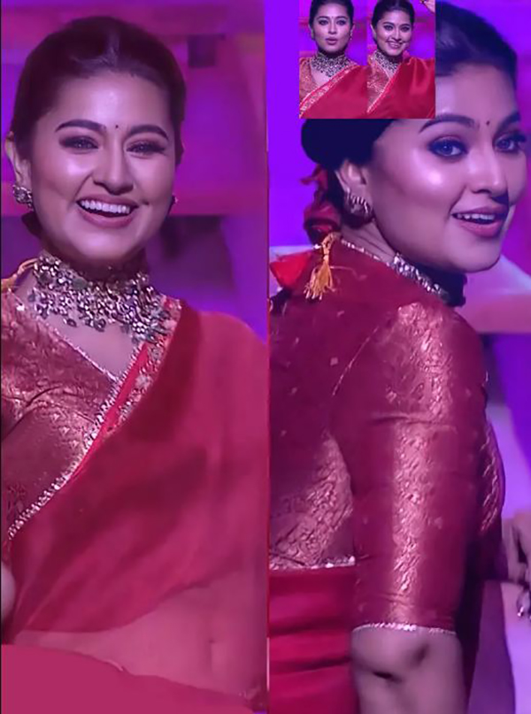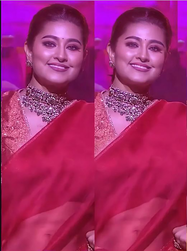 இதற்காக அன்றாடம் உடற்பயிற்சியையும் செய்து வருகின்றார். அவ்வப்போது திரை விழாக்களில் கலந்து கொள்ளும் நடிகை சினேகா சமீபத்தில் ஒரு விழாவில் கலந்துகொண்டார். சிகப்பு நிறத்திலான ட்ரான்ஸ்பரண்ட் புடவை அணிந்து கொண்டு