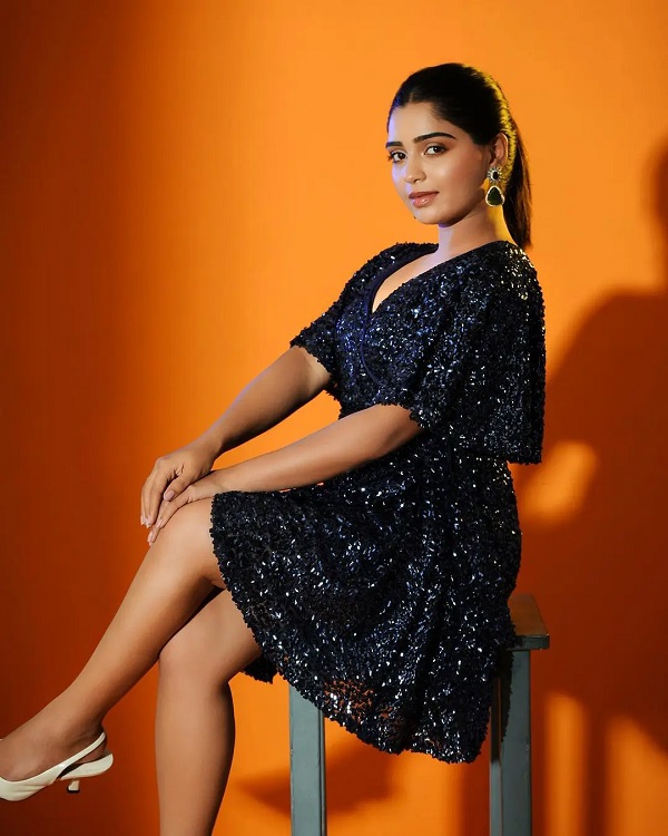 கருப்பு வண்ணத்தில் ஜிகுஜிகுவென வர இருக்கும் குட்டியன கவுன் ஒன்றை அணிந்து கொண்டு தன்னுடைய தொடையழகு எடுப்பாக தெரிய போஸ் கொடுத்திருக்கிறார் நடிகை கௌரி கிஷன்.