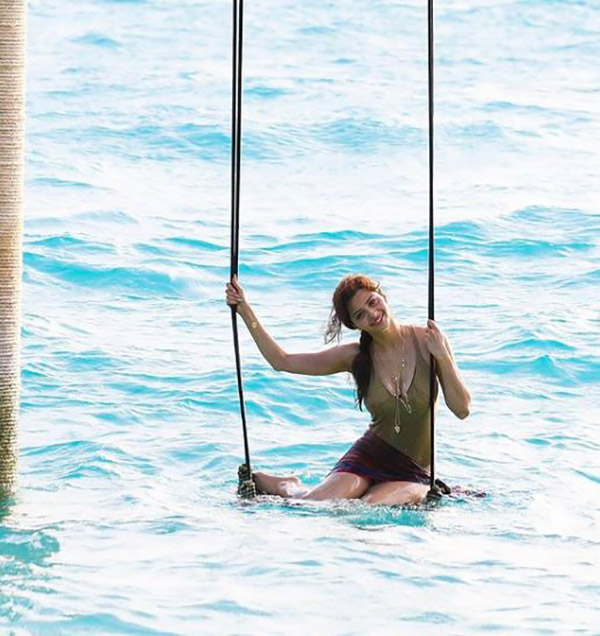 இணையத்தில் ஆக்டிவாக இருக்கும் இவர் தற்போது, கடலினுள் ஊஞ்சல் கட்டி பிகினியில் தொடை காட்டி புகைப்படத்தொகுப்பு ஒன்றை வெளியிட்டு உள்ளார். இந்த புகைப்படங்களுக்கு லைக்குகள் மலைபோல் குவித்து வருகின்றன.