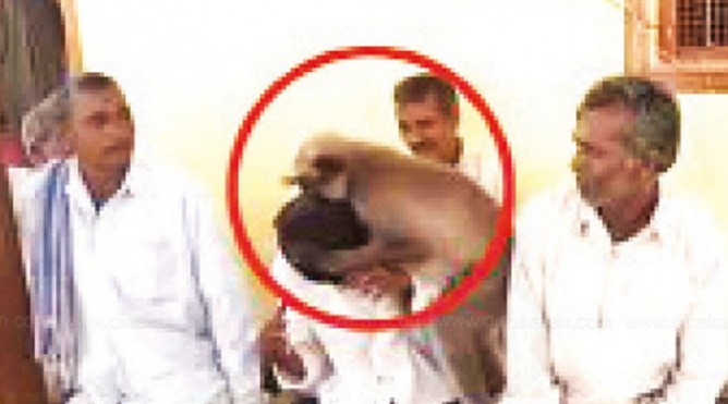 அனைவரும் அமர்ந்திருக்கையில் திடீரென அழையா விருந்தாளியாக வந்த குரங்கு, இறந்துபோனவரின் உடலுக்கு அருகில் சிறிது நேரம் அமர்ந்திருந்து அஞ்சலி செலுத்தியது.