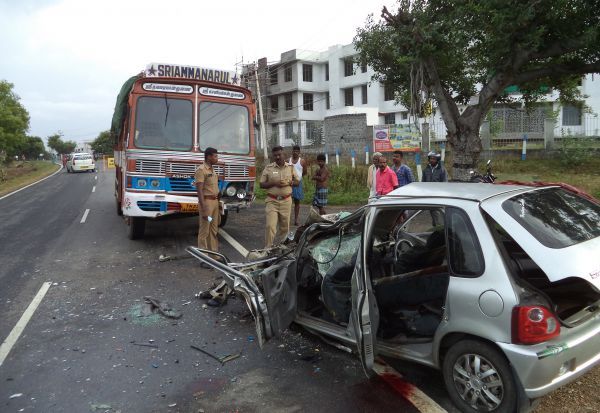 சுப்புராஜின் மனைவி கிருத்திகா அதிவேகத்தில் காரை ஓட்டி சென்றுள்ளார். தர்மபுரியை அடுத்த தேசிய நெடுஞ்சாலையில் கார் சென்றுகொண்டிருந்த போது, திடீரென கட்டுப்பாட்டை இழந்து தடுப்புசுவரில் மோதி, இருமுறை சுழன்று தலைகீழாக கவிழ்ந்துள்ளது.