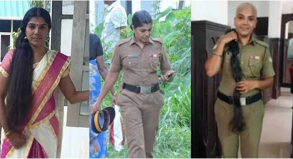 கேரள மாநிலம் திருச்சூரை சேர்ந்த 44 வயது பெண் போலிஸ் அதிகாரி அபர்ணா. இவர் தன் முடியை தானமாக கொடுத்தது கே ன்சர் நோயாளிகளுக்காகத்தான்.