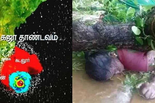 தமிழத்தில் கஜா புயல் காரணமாக பெண் ஒருவர் மீது மரம் சாய்ந்ததால், அவர் பரிதாபமாக இறந்து கிடக்கும் புகைப்படம் தற்போது சமூகவலைத்தளங்களில் வைரலாகி வருகிறது. நேற்று நள்ளிரவு தமிழகத்தை உலுக்கிய கஜா புயல் காரணமாக தற்போது வரை 20க்கும் மேற்பட்டோர் உயிரிழந்திருப்பதாக தகவல் வெளியாகியுள்ளது.